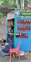 Today, we visited a pavement shoe-repairer (‘cobbler’ or ‘mochi’) in Bangalore. All over India, one can find these useful street side artisans. Often, they work from small open fronted huts, which contain their tools and materials as well as footwear that is either waiting to be repaired or already fixed. One could say that the mochis are iconic features of the streets of India.