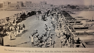 Recently, I obtained a book called “Wonderful India”. Inside its front cover, a former owner of the book had handwritten “LW Morris, Royal Air Force, Calcutta-July 1943”. The current bridge was opened in February 1943. The book does not contain a picture of that bridge, Instead, it contains a photograph of its predecessor, the pontoon bridge, with the caption: