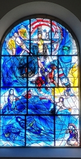 After Sara’s death, her parents wanted to do something to perpetuate her memory. They and others decided to restore the church. Part of this operation was to replace the existing plain glass east window with a commemorative window, which they asked the artist Marc Chagall (1887-1985) to design for them. This Jewish artist was chosen because Sara and her mother had admired Chagall’s stained-glass at an exhibition they had visited at the Louvre in Paris (France). These included some of the windows that Chagall had created for the synagogue of the Hadassah Medical Centre in Jerusalem (Israel). They were installed in 1962 after having been exhibited not only in Paris but also in New York City.