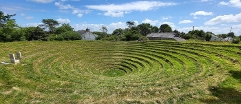 The pit at Gwennap (near Redruth) is one of the most interesting places we have visited in Cornwall. It is an inverted cone with circular tiers of seating cut into its side. Grass grows on the seating and the surface surrounding the pit. Almost perfectly geometrical, it rivals some of the stone stepwells I have seen in India. The present pit was constructed in early 1807, and is still used to hold Methodist services occasionally. What exists today is a remodelling of an earlier depression in the ground which John Wesley described (in September 1766) as being: