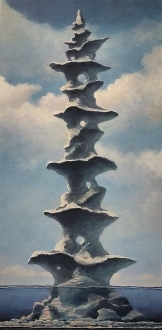 At first sight, his paintings look almost like photographs. However, after a few moments’ contemplation, they can be seen to depict subjects – often structures and aspects of nature – that are at the same time unreal and almost but not quite real. His subject matter is not quite surreal, but is an unusually dreamy interpretation of the real world. None of the paintings on display contained any signs of human presence. The gallery’s website (www.whitecube.com/gallery-exhibitions/minoru-nomata-masons-yard-2024) includes the following: