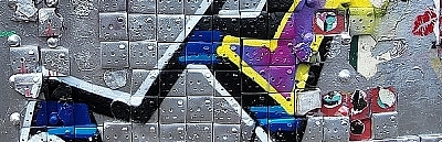 The wall was covered with a mosaic-like pattern of electrical socket facings. These had been painted over or sprayed to create patterned graffiti such is found all along the northern half of brick Lane.