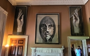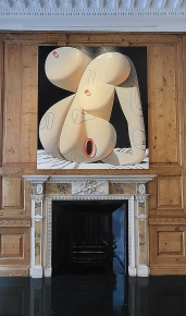The artist, whose work is being exhibited, is Leo Park, who was born in Sweden in 1980. His exhibition in Savile Row is called “Beyond Pleasure”. It consists mostly of large paintings, but also a wall covered with a mosaic of small sketches, The beautifully executed artworks are eye-catching, and reminded me a little of the works of some of the pre-WW2 Surrealists. The paintings and sketches are of imagined forms that immediately made me think of human bodies. The images are clearly meant to evoke such thoughts, but looked at objectively, they are all shapes that do not exist in nature. The paintings and drawings are all displayed in the beautifully restored rooms of the 18th century building that houses the gallery.