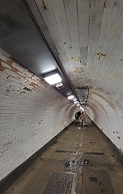 Although there many notices forbidding cycling in the tunnel, there is no shortage of cyclists disobeying this rule. This makes walking in the tunnel slightly hazardous as the cyclists speed along the narrow walkway in the long, straight tunnel. Using the tunnel is a convenient way of traversing the Thames and gives one the opportunity to walk under water.