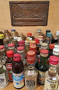 The sculptures are with only a very few exceptions, wonderful assemblages or tableaux constructed with found objects. For example, one of these is a shelf overloaded with miniature booze bottles, all positioned beneath a miniature image of Leonardo da Vinci’s depiction of the Last Supper. There are several model sailing boats, on which Blake has placed plastic models (toys) of people expressing a range of behaviours. Other sculptural assemblies are more complex and need to be seen rather than described. I mentioned ‘exceptions’ at the beginning of this paragraph. This refers to four objects – they look like large stones (one of which is a carved stone head) – which Blake called “Found Sculpture”. Each of these is mounted on its own plinth. By doing so, the artist has ‘elevated’ these natural objects to the status of ‘fine art’, and as the gallery’s hand-out said, they challenge: