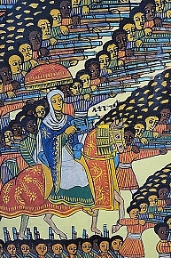 Although it was painted in the 1940s, the picture illustrates the Battle of Adwa, which raged on the 1st of March 1896. The Ethiopians defeated the Italians. By the end of the 19th century, most of Africa had been invaded and occupied by various European nations. The exceptions were Liberia and Ethiopia. In 1889, Italy, having occupied to coastal territory of Eritrea, signed a treaty with King Menelik of Shewa. It was signed in Italian and translated into Amharic. The Italian version made Ethiopia a protectorate of Italy – virtually, an Italian colony. However, the Amharic version read differently – it agreed that the Ethiopians could use the ‘good offices’ of the Italians in their relations with foreign powers, if they wished.