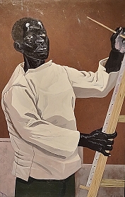 Although I am presenting you with a negative view of the exhibition, I should in all fairness point out a couple of things I loved. One was an installation consisting of models of ships suspended from the ceiling by fine threads. This visually exciting work was created by Hew Locke, and was in one of the few rooms that was brightly lit. The other exhibit, which occupied two galleries was a collection of painted wooden cut-outs depicting people at a carnival. This work, which was accompanied by a soundtrack with voice and music, was created by Lubaina Hamid – like Locke a Royal Academician – in 2004. I was also interested to see the original painting of Dido Elizabeth Belle and her cousin Lady Elizabeth Murray by David Martin (1737-1797), who was a Royal Academician. These two ladies were associated with Kenwood House in north London, where a photograph of the painting is on display. It was nice to see the original. There were other artworks I liked in the exhibition, but felt that their impact was spoiled by being displayed alongside other works without much evidence of thoughtful curating.