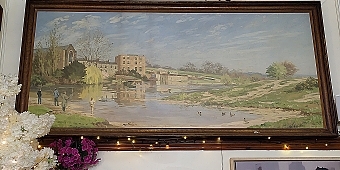High on the end wall of the sitting area within Louis, there is a large, framed painting of a pond with buildings along one side of it. These are reflected in the water. In the foreground, three figures are depicted fishing with rods. The picture is painted with muted colours, or, possibly, the colours have faded since it was completed. Despite having visited Louis on numerous occasions, I had never looked at the painting properly until today. At the lower left corner of the painting, there is the artist’s name and a date: