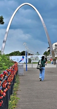 A PARABOLIC ARCHWAY made of stainless-steel straddles a pedestrianised roadway on the clifftop near to the harbour in Folkestone (Kent). A few yards east of the archway, the road descends steeply towards the harbour and a pier from which ships used to sail to and from Fance. The impressive metal hoop was inaugurated in 2014 by Prince ‘Harry’, son of King Charles III. It commemorates the one hundredth anniversary of the start of WW1. The roadway that runs along the clifftop and then down to the harbour is now known as Road of Remembrance. On a fence close to the archway, there are thousands of crocheted poppies, lovingly made by women mourning the tragedy of the so-called Great war.