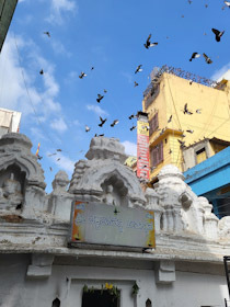 As you stroll along the thoroughfare, you will pass mandirs and one church. And near the KR Market end of the road, a short lane leads to a Muslim shrine, the Dargah-e-Hazrath Manik Mastan Sha Saherwadi. It is well worth removing your footwear to enter this peaceful place. The grave it contains is in a small room with a mirrored, domed ceiling.