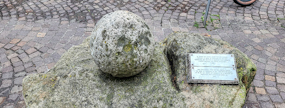 This stone cannon ball was fired by the English at the siege of Boulogne in 1544. It was returned to England by the people of Boulogne as a gesture of friendship in 1976.