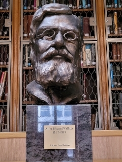 During our recent visit to the Linnean Society, we viewed a small but fascinating exhibition about Wallace. It is being held in the Society’s magnificent library until the 20th of December 2023. The exhibits include Wallace’s personal library and other exhibits relating to his life and work. Everything is beautifully explained by good labelling, and the library staff were very friendly and informative.