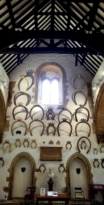 WHEN I WAS a child, I used to enjoy leafing through a book filled with black and white photographs of places in all the counties of England. One of them that stuck in my mind was of a wall covered with large horseshoes. It was only today (the 11th of August 2023) that I saw this wall in ‘real life’. It is in the great hall of Oakham Castle in England’s smallest county – Rutland. The hall, a fine example of Norman architecture, was built between about 1180 and 1190 for one of William the Conqueror’s grandsons – Walkelin de Ferrers. The name ‘Ferrers’ is related to the French word for iron and the English word ‘farrier’, who applies shoes to horse’s hooves.