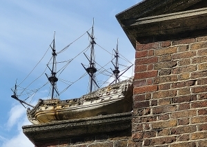 Buildings that flank the two sides of the entrance gate are adorned with sculptures of sailing vessels, complete with masts and rigging. On each of the gatehouses, there are plaques recording the fact that the TGA was built in 1695 on land donated by Henry Mudd of Rattcliff and his widowed sister-in-law. At the end of the rectangular lawn that is surrounded by the dwelling units, there is a chapel, Sadly, the compound was locked up and could only be viewed from the street. It appears that people are still living there.