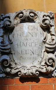 I FIRST CAME ACROSS the critic, writer, and poet Leigh Hunt (1784-1859) when I was collecting information for my book about Hampstead. For some years, Hunt lived in a house in Hampstead’s Vale of Health. Amongst the many noteworthy people who visited him there regularly were the poets Shelley and Keats. Later, when I was writing my book about west London, I found out that Hunt had resided in Edward’s Square, Kensington. He had also lived in Chelsea. Until today (the 7th of August 2023), I had never seen a memorial to Hunt. Today, I spotted one, a carved stone plaque, high up on the wall of the Bush Theatre that faces Pennard Road (in Shepherds Bush).