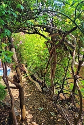The World Peace Garden began to be created in about 2014 on waste land between South Hill Park and the railway station. Inspired by a local estate agent, Jonathan Bergman, the garden was designed by Tony Panayiotou and Michael Wardle, and created by gardeners Keiko, Hugh, Laurence, Miki, and Mer. In 2016, it was awarded the ‘Time Out Love London Award for Local Culture in Hampstead’. Today, it is still delightful, although slightly overgrown. During our midday visit, we saw several people enjoying lunch in shady nooks.