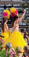 After three floats had passed, the lady hopped off the bench, and said to me: