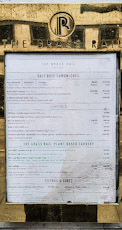 Winding the clock forwards several decades, I now enjoy eating salt beef occasionally. Today, the 22nd of March 2023, we needed to go to Selfridges for something, and as we were there, I suggested that we ate at the Brass Rail. Unsurprisingly, the eatery has changed its appearance considerably since the 1960s, but it is still located in the same part of Selfridges as it was originally. Its tables are enclosed in an area lined banquettes upholstered with red fitted cushions. The service was brisk and attentive. We ordered Reuben sandwiches in rye bread. These are generously filled with warm salt beef, sauerkraut, Swiss cheese, gherkin, and Russian dressing.