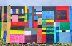 THE SERPENTINE NORTH art gallery is housed in what was once a gunpowder store, built in 1805. Next to it, there is an elegantly curvaceous café created by the Iraqi-British architect Zaha Hadid (1950-2016). Until the 3rd of September 2023, there is an interesting exhibit behind the north side of the café. It is an abstract mural of brightly coloured, differently sized rectangles and squares. When I showed a photograph of this to our daughter, she said it reminded her of African printed textiles. Maybe, this should not be surprising suggestions because the mural was painted by a Ghanaian artist, Atta Kwami (1956-2021), who was born in Accra.