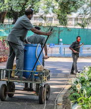In India, there is no shortage of manpower and wages are not high. So, employing three men to do what a costly sprinkler system would do in Western Europe makes sense and gives employment to those who have families to feed.