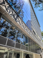 The fifth floor has a terrace from which there are some great views. There were some tables and chairs up there, but the café, if it exists, was not open.