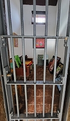 In February 2023, we visited Fort Kochi to explore the 2022 Kochi Muziris Art Biennale. Unconnected with this major event, we visited an exhibition of artworks being displayed in the former prison. This included both paintings and sculptures. What made it an usual exhibition is that the exhibits are all contained within the cells behind strong iron doors with vertical bars. The doors that once prevented the prisoners from leaving the cells now prevent visitors from entering them.