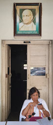 You can imagine my astonishment when I saw an elderly man who looked just like Mahatma Gandhi, both in physiognomy and in his manner of dressing. Holding a wooden staff and dressed in a white dhoti, sandals, and a shawl, he was a highly credible Gandhi lookalike.