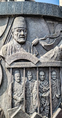 One memorial, a large rectangular bas-relief, is dedicated to the great poet Mirza Ghalib (1797-1869).