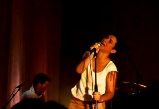 Acontece que aquela menina discreta dos Gerais da Faculdade de Direito era agora uma mulher brilhante com uma capacidade ímpar, não só de dominar o espaço do palco e a emoção da plateia, mas de se comover com o corpo todo. Não só de dominar o espaço do palco, mas o intermúndio, o espaço entre os corpos. A culpa é da vontade. Que, no caso da Manela, nem com a idade morre. Além de profundamente sensual na reacção à música, quase nos arranca a pele na forma como no-la mostra, como usa a voz toda e a faz sumir e reassomar, como é humilde e, ao mesmo tempo, olímpica e intrépida, insolente e audaciosa. A forma como ela se moveu e interpretou, nessa noite de 4 de Julho de 2005, "A culpa é da vontade", dançando "visceralmente" (não há palavra melhor) no mesmo lugar e afastando e aproximando de si o microfone sem que a base do suporte saísse do lugar, voltando e baixando a cabeça em veneração à música, mas o torso sempre voltado para o público, fez-me perder o ar e pensar que afinal era possível, que a entidade-intérprete era tão ou mais diabólica como ou do que a entidade-escrevente (que, contudo, raramente se exibe fisicamente, embora seja cada vez mais requisitada para tal). O cabelo curto e as linhas gregas da "Manela", a forma como, sendo mãe, move naturalmente e com uma leveza extrema o próprio corpo, faz da experiência de a ver em palco uma experiência religiosa.