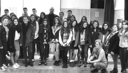 Vê-se na foto, que aliás é uma parte muito pequena das três turmas que me devolveram em atenção, escuta e entendimento a minha dedicação. Com efeito, mais uma vez, a foto ia sendo esquecida. Só nos lembramos no momento dos despojos da sessão. Mas veio a tempo. Verdade que os nossos sorrisos, sendo sinceros, são plásticos, e que ao fim de algumas fotos, como disse uma das meninas, com piada, a cara já doesse.Mas o que se vê na foto é a luz de AlpendOurada. A luz de fora e a luz de dentro. À centésima escola ainda é bom poder replicar e reiterar a evidência: há sempre coisas novas, há sempre coisas diferentes, e, quando denominamos as sessões por eles, pelas maravilhosas pessoas mais jovens que somos levados a contaminar e influenciar, nada pode correr mal, assim haja tempo, mesmo no meio do barulho, de ver os que querem ser vistos e de descobrir os que não querem, pelo menos para os ouvir. E isto também se aplica às professoras que aparecem, cujo nome, por não me lembrar, vou ser condenado a saber - sei que a da ponta era a de português, a Emília, mas a de Matemática, de cócoras, em pose de futebolista (pena não termos aprofundado a utilidade da Matemática na literatura!), não, nem a do meio, que era uma ternura. A menina do centro, e vocês sabem logo qual é a menina do centro, mesmo sem medir com uma régua, foi também a menina do centro na sessão e, por falarmos de uma pessoa de qualidade superior, sabe também, ela própria, que por já ser excepcional aos dezasseis anos, não é melhor do que os outros, os que não são tanto como ela: porque nós somos demasiado complexos para sermos definidos assim, e é esta, sempre, a mensagem que lhes levo.Uma menina que seja má aluna e pouco culta pode ser o pilar, em casa, de uma mãe doente, de quem trata e com quem consome todas as suas forças, provavelmente faz o mesmo a vizinhas e até apoia no lar da vila. E não será esta tão ou mais valorosa do que a menina do centro? É, mas a menina do centro é fenomenal e chama-se Ana Catarina Alves. Aquilo que ela nos deu de novo não é muito comum: a forma como está atenta às etapas da vida e as vai processando em termos práticos e até filosóficos e intelectuais. A visão da morte. Neste passo, custa-me não ser imenso. Verdade que - e ontem foi-me dado o que peço sempre: tempo -, quando tenho tempo, observo a postura corporal e o olhar de quase todos, para perceber se alguém quer dizer ou mostrar alguma coisa que não disse ou mostrou antes, e não diz ou não mostra por falta de coragem ou timidez, que é normal e até recomendável, por ser um exercício de humildade. Por isso, custa-me a ideia de ter partido e que algum menino ou menina não tenha tido coragem de dizer ou mostrar o que há tanto tempo queria dizer ou mostrar. Mas uma coisa que eles me devolveram, ontem, foi a gratidão, e fizeram-no de forma expressa, com as dedicatórias que deixaram escritas ou com a atitude, com o olhar de agradecimento: disseram, de forma expressa, que o que fiz, escrevi e disse, foi importante para eles. Que se sentiram vistos onde eram menos visíveis. Ontem de manhã não houve fugas nem colegas que, para mostrar coragem e rebeldia, questionaram os que colaboraram comigo. Ontem o meu pedido foi totalmente atendido: todos se consideraram parte daquilo, todos se consideraram alvo dos mimos e dos aforismos e dos princípios, mesmo os que não viram o seu nome mencionado. Por isso é que Ana Catarina serve, por exemplo, a qualquer Patrícia ou Paula ou Milene. Que o Zé Lemos pode ser o Henrique, Nuno ou José Pedro ou Leandro ou Marco. Que Diana pode ser Anabela, ou Margarida pode ser Fátima, que Sara pode ser Ana Isabel, que Samuel pode ser Ricardo. Mas os que vieram para junto de mim, os que o fizeram expressamente, dirão se valeu a pena. A Fatinha na orquestra de Berlim a tocar a primeira nota na sua flauta transversal. A Pereirinha e o elogio da insegurança ou da fragilidade. A tia Lúcia a aterrar de helicóptero no H do São João para o primeiro dia como enfermeira. A Rosário e a aprendizagem da imperfeição. A Inês que canta e quase ninguém sabia. A Ana Lopes, o closet e a espessura e o poder das palavras (e da pessoa). A Fátima Ferreira e a visibilidade e força dos invisíveis. A Inês Bouça e o nosso Prémio Nobel duplo. A Inês Sousa e os dentistas e o cinema e a Kika. A Joana Vieira e a veterinária da Common Wealth. A Bebiana do cantinho e as histórias secretas e poderosas. A Mariana Luís, oh, a discretíssima Mariana Luís e a beleza e a subtileza e o tamanho interior. A Elisabete homónima e as férias de Verão com ele dentro. A Mariana Correira Carneiro e o Einaudi e o Forrest Gump e o Johnny Depp e avó "francesa". A Rita Caetano e o abismo do futuro. O Zé Lemos, o Tino de Fandinhães, a sensibilidade, a ambição política e o sono da avó, que passou a ser a avó de todos nós. Depois disto tudo, claro, devíamos colher os tais despojos da sessão todos juntos. Mas não é assim. Abre-se o Douro e o Tâmega e já não há ninguém. E, mesmo que volte, mesmo que fique, eu já estou entre-rios.