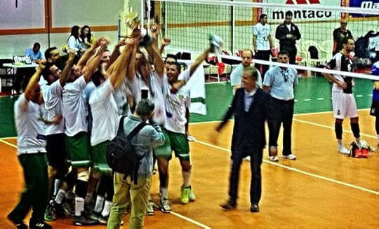 E aí está. Há três anos campeão da 3ª, há dois campeão da 2ª, há poucas horas o nosso Atlântico da Madalena sagrou-se campeão nacional da 1ª divisão. Num jogo épico, em que esteve a ganhar por 2-0 e teve oito match points no terceiro set, permitindo a redução do outro grande finalista, o Castêlo da Maia, com um 35-33 (!!!) - grande jogo do Castêlo - e depois de se deixar empatar a 2, o Atlântico venceu a negra por 15-13, levando o pavilhão do Castêlo (repleto de gaienses) ao rubro.