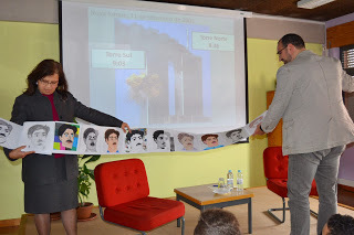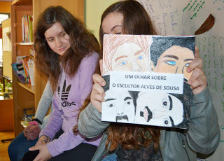 E depois a professora Isabel teve uma ideia perfeita. Quando eu me calei, no fim da intervenção, ela passou uma folha branca por aluno e todos me dedicaram umas palavras. As folhas estavam furadas e foram arquivadas todas juntas numa capa artesanal previamente trabalhada pela turma de artes, que aliás fez um trabalho belíssimo e inédito em torno de uma fotografia do meu bisavô escultor, sob iluminação da professora Ana Paula. E, pela primeira vez no final de uma sessão, a professora Dora teve de conter a vontade de alguns terem o seu exemplar do livro assinado na minha presença porque havia muitos outros que já não estavam ali, tinham deixado um post-it com a razão de ciência. Curiosamente, todos voltaram depois do almoço, quando souberam que eu ia ficar à espera deles. Venderam-se neste escola cinquenta ou sessenta livros, no conjunto, quando raramente passam da dezena. E, afinal, eram três nonos anos. O professor Abel Cruz tem uma dedicação excepcional aos livros e à biblioteca, o professor Paulo, que fotografou, uma dedicação excepcional às crianças.