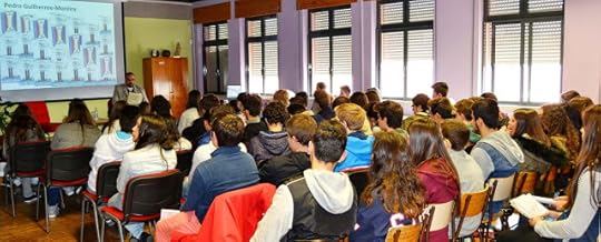 vida), a Andreia Pereira (as palavras inspiradoras e o homem simpático e divertido), o Vasco (Blue eyes), a Bruna Campos e a Andreia (e a expressão clara da leitura), a apresentação da Ana Rita (adorei a apresentação, e sim, um abraço e um beijo, como pediste), o Cristiano Hipólito (leitor e a oportunidade melhor), a Diana Teixeira, as Professoras Maria José Soares, Maria Carlos e Maria João, o professor de design Rui Santos e o Manuel Vieira (obrigado por lerem o livro), o Tiago Cunha das estrelas, a Inês Matos (pelo silêncio empenhado).Os putos de hoje são estratosféricos e lindos.