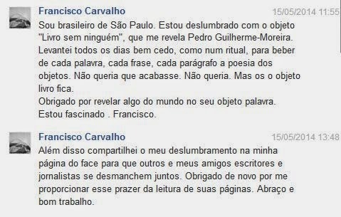 As palavras em privado - que me comoveram, mas que me escaparam ao tempo, e eu li quase duas semanas depois - e que o Francisco autorizou a revelar: