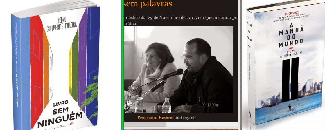 E, urgentemente, precisei de conhecer um outro espaço, tão diferente e tão igual a Nova Iorque.Já tinha ouvido falar do Sítio do Pica-Pau Amarelo, da Rua Sésamo e até mesmo do Parque da Mónica, mas juro que nunca ouvira tal coisa como a rua do arco celeste. Bem, parece que:Na rua do arco-celeste há sete casas, cada uma de sua cor; e também um café, uma horta, um jardim, uma florista, uma sucata, um infantário e uma escola. Mas, embora lá vivam pessoas – que frequentam o café, trabalham na horta, lêem no jardim, compram flores para oferecer a quem amam, se desembaraçam dos seus podres ou jogam à bola no recreio –, (…) durante este ano extraordinário, acontece de tudo na rua: há quem se apaixone e quem se separe, quem nasça, quem morra, quem mate e até quem, depois do trauma, consiga uma vida nova. Mas, como em todas as ruas, havemos de encontrar nesta preconceitos, dúvidas, alegrias, segredos e desgostos. Antes mesmo de ler a obra, li esta sinopse e, quase de imediato – não sei se por andar às voltas com a Mensagemou se é mesmo a minha paranoia pela simbologia – o número sete começou a elevar-se das entrelinhas: 7 casas, sete espaços comuns, sete atividades, sete acontecimentos (porque considerei o trauma como um acontecimento). E depois, apareceram cinco nomes que retratam esta rua do arco-íris.AH! Espero que já tenha aprendido a fazer contas de dividir!É que, para quem não esteve cá no ano passado, este senhor aqui sentado ao meu lado, teve um problema a resolver com as frações. Este senhor, que advoga, escreve e estaciona carros nos poveiros, também foi em tempos, uma criança dada mais às letras do que aos números. Vai daí, quando finalmente a professora D. Laura conseguiu ensiná-lo a dividir, o Pedrinho presenteou-a com uma bela redação! Foi o princípio de uma perfeita relação, nem sempre calma como convém em qualquer relação, com os papéis: hoje conta já com um palmarés digno de atenção, a saber: Aos 11, entre rapazes de 16 e 17, empatou o primeiro lugar dos jogos florais da escola com um rapaz de 12, hoje um conhecido político. Aos 13, perdeu para o mesmo menino, mas levou o 2.º e o 3.º prémios. Aos 16, ganhou (finalmente sozinho), porque o menino político entrou na Universidade. No ano seguinte entrou ele, na de Coimbra, e andou com Torga no trólei 3, mas nunca se falaram. Profissionalmente, foi dos primeiros advogados a ganhar o Prémio Lopes Cardoso, com um artigo publicado, primeiro, na prestigiada Revista da Ordem dos Advogados e, depois, em livro. Decidiu publicar apenas aos 40, porque queria saber, e escrever, mais. Em 2012 foi agraciado com o prémio de poesia do Museu Nacional da Imprensa. A Manhã do Mundo aparece a meio do seu «dia», sendo o seu primeiro romance.(isto fui copiar à net. Vantagens das novas tecnologias!