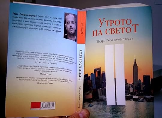 À chegada tinha a Ucrânia, a Rússia e o Uzbeqistão corporizados por três belas meninas chamadas, respectivamente, Oleksandra, Sasha e Ksenia, que, tendo Portugal como casa, estão a tentar reforçar o seu português. Eu é que aprendi. Aprendi que o agá, em uzbeque, se lê como em hebraico, com o céu da boca, e mostrei a capa d'"A manhã do mundo" em Macedónio, pelo menos para que todas pudessem reconhecer o seu alfabeto, o cirílico, porque o meu nome, Педро Гиљерме-Мореира, escreve-se da mesma forma em todos os lados do cirílico.Nesta altura já a responsabilidade da luz deixara de ser apenas das vidraças para se virar para as pessoas. Foram as primeiras três dedicatórias.