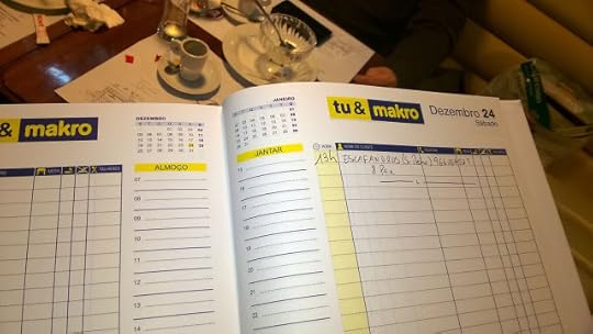 Este almoço deve estar a fazer (ou já fez, não sei) 20 anos de tradição e nós acreditamos que durará para sempre e que o último a morrer vai almoçar sozinho com as cadeiras dos outros todas disponíveis e ocupadas ao mesmo tempo. Nos últimos 15 anos, o almoço tem sido sempre na célebre Confeitaria Cunha, ali no gaveto Rua Sá da Bandeira - Rua Guedes de Azevedo, em frente à Capela de Fradelos e à vista do Silo Auto, no Porto. Nos últimos anos já ninguém telefona a ninguém. Pura e simplesmente aparecem, sentam-se, comem, conversam e dão-se os ossos ao tradicional aperto da amizade. Havia, contudo, um só acto que queríamos eliminar: a necessidade de alguém ligar para a Cunha a reservar mesa. Ora, o ano passado, graças ao alto patrocínio da Makro (que há muitos anos fornece à Cunha as agendas especiais de restauração), foi-me entregue pela Sandra Paulo (chefona e mulher do terreno na dita Makro) a agenda de que eu seria núncio e portador. Este ano vai acontecer a mesma coisa. Ou seja, por uma vez, em vez de ser o comercial de campo a entregar esta agenda ao cliente Cunha, é o yours truly que a passará a levantar na Makro todos os anos e a entregará ao chefe de sala da Cunha que, como fez o ano passado, marcará imediatamente o almoço do ano seguinte. O ano passado levei a de 2016 e foi inscrito o almoço deste ano, como podem ver na foto junta. Este ano levarei a de 2017. Assim os escafandros só têm de fazer uma coisa: aparecer. E será assim até ao último que de nós morra, o tal que almoçará sozinho (mas nunca desacompanhado) numa mesa de oito. Podia terminar com aquele cliché do "enquanto cá andarmos todos é que é bonito", mas não. De facto, a maioria destas histórias, a nossa e outras parecidas, que se vêm extinguindo com os anos e já quase só existem nas lendas, continuam a ficar à tona como os últimos sinais de humanidade de uma sociedade iluminada por automatismos e máquinas e eficácia e ceo's. Os Escafandros não. Os Escafandros nunca. Os Escafandros são umas bestas, mas aparecem. Deixem-nos estar assim. Obrigado, Sandra Paulo e Makro e Cunha, por não serem automáticos. E até sempre.