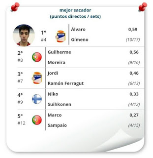 the sincere smiles, the affectionate hand shake, the respect, and, I am sure, a principle of friendship. I have no illusions: I know very well that most people, even our friends, do not deal with the visibility or fallible concept of success, a concept I have always hated. Things may even happen and be shown up there, in the absolute, but these two boys were where everyone was and Manel was two years ago: at first, at zero absolute. And they worked hard to get here - and resist inside the court. It is where many who can get here and further are. Their achievements can and should be counted as long as we do not lose the notion of ridicule. What you read here is just the feast of a proud father. I do not think this is the maximum. It's just beautiful. As a volleyball lover, I thank these players for the amazing performance they offered me. And they are not even 18. Ps: Someone identify Manel Meirinho here, which I can not; But he deserves to read this. (I got it, later :) )Algumas fotos (some photos):