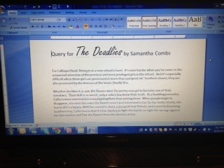 With that in mind, I confess, I have sent my recent manuscript, The Deadlies, out to the agenting world. A dark, YA paranormal, set in the South, about catty girls possessed by the demons of the seven deadly sins, I am very proud of this one. So I set it free in the deep end of the pool. Two agents from the shark tanks have swum up to me, shown me their teeth, and asked for pages. I sent them. I was too scared not to. Now I wait.