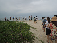 We had signed up for a tour of the "intertidal zone", so we hurried back to A-Road to meet the representative who would lead us to where the tour guide was waiting. Since we were planning to go swimming after that, we put on swimsuits under our clothes and brought our snorkel gear.