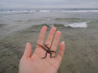 starfishIt was fun getting to see and hold sea cucumbers (which feel pleasantly squishy and squirt water like a bath toy when you squeeze them right -- no, I don't think it harms them), as well as a starfish, something my family always called a spider starfish back in Kenya but the guide was adamant was not actually a starfish, and a couple other creatures whose English names I never did find out.