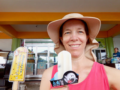 This time I stood outside for the 20-minute voyage. The sea wasn't too rough, and it was windy and a really fun ride. Then we got on a shared taxi-van like the one we'd come out there on, followed by a train to Taichung, after which I took a taxi back to home sweet home. It was a great trip! I hope to go back to Xiao Liu Qiu again sometime with Floyd.