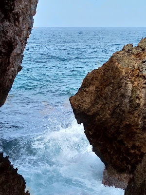 an ocean view from the Black Devil CaveOnce again, the "cave" involved a hiking trail (read: paved walkway with stairs) through and near a series of small caves and overhangs, with plenty of gorgeous ocean views. Several times, I stopped to just watch the waves and talk to God for a while.Back on the scooter, I succeeded in changing the battery when the original one finally ran out of juice, a task I had been a little nervous about, but which went fine. But I was thankful for the helpful stranger who showed me how to open the seat compartment where the battery lives when I couldn't remember how. (No, I don't ride scooters very often. Why do you ask?)