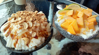 We wanted to get bings (tasty frozen desserts - Xiao Liu Qiu has a LOT of places that sell them) from another little restaurant that someone else recommended. Once again, we got the last available table. We ordered a mango bing and a caramel-cashew bing to share. (Both were delicious, though I liked the caramel-cashew one better.) Once again, there was a line out the door by the time we left. It seems the tourists were following us!