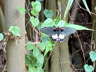 Yum, yum!Behind the bing restaurant, we took a nature walk through a bamboo garden that had ponds full of turtles and fish (and a particularly pretty butterfly). Then it was time to catch our boat back to Taiwan. (It sounds odd to say that, since Xiao Liu Qiu does belong to Taiwan ... but I can't say "back to the mainland" either, since Taiwan is also an island, and the mainland is China.)