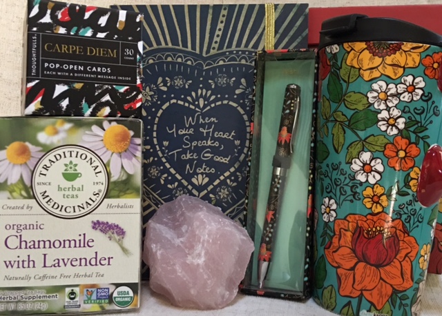1st Prize (US only): Tea & Contemplation, a collection of favorite things, starts with an uplifting message from “Seize the Day” Pop Open Cards. Fill a ceramic thermal mug to sip Lavender Chamomile Tea while you contemplate your ideas and dreams. Write your thoughts in a journal, whose guiding words are: When Your Heart Speaks... take good notes! A Wish pen is included. Finally, pick a place to display a large piece of gemmy rose quartz, a stone long linked to matters of the heart. It’s said when rose quartz is nearby, love (of all kinds) comes along to keep it company. These items will be arranged in a “keeper box” and delivered to your door.