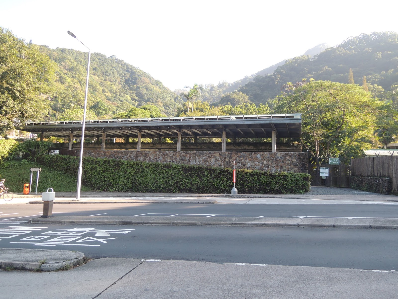 This is the view from the same spot as above, looking after the bus as it continues on its way. Note the hard-to-read Kadoorie Farm sign just to the left of the bus, by the cyclists. If you're close enough to read it, you've probably already missed the stop!