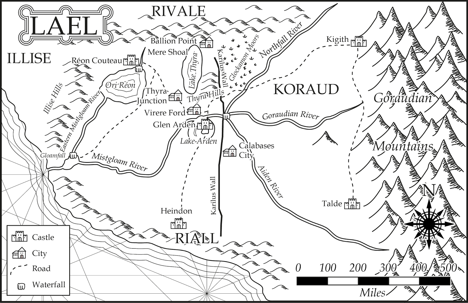What dangers should we avoid in Lael? Mostly, the war. The neighboring duchy of Koraud, on the eastern border, is threatening war, especially now that rumors are circulating of the resurrection of its famed warlord Faolan Mactalde. Plus, there’s the threat of religious and political unrest from the Nateros protesters—a faction of fanatical traditionalists—within Lael’s own borders.