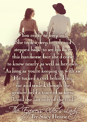 Reading Is My SuperPower - Review"The Express Rider’s Lady by Stacy Henrie not only provides a sweet romance but also gives readers a compelling glimpse into the perilous conditions once common to cross terrain we now take for granted. Smooth writing, vivid settings, and heartstopping action bring the characters and the history to life. A quick read, as typical to the Love Inspired line, but very entertaining!"