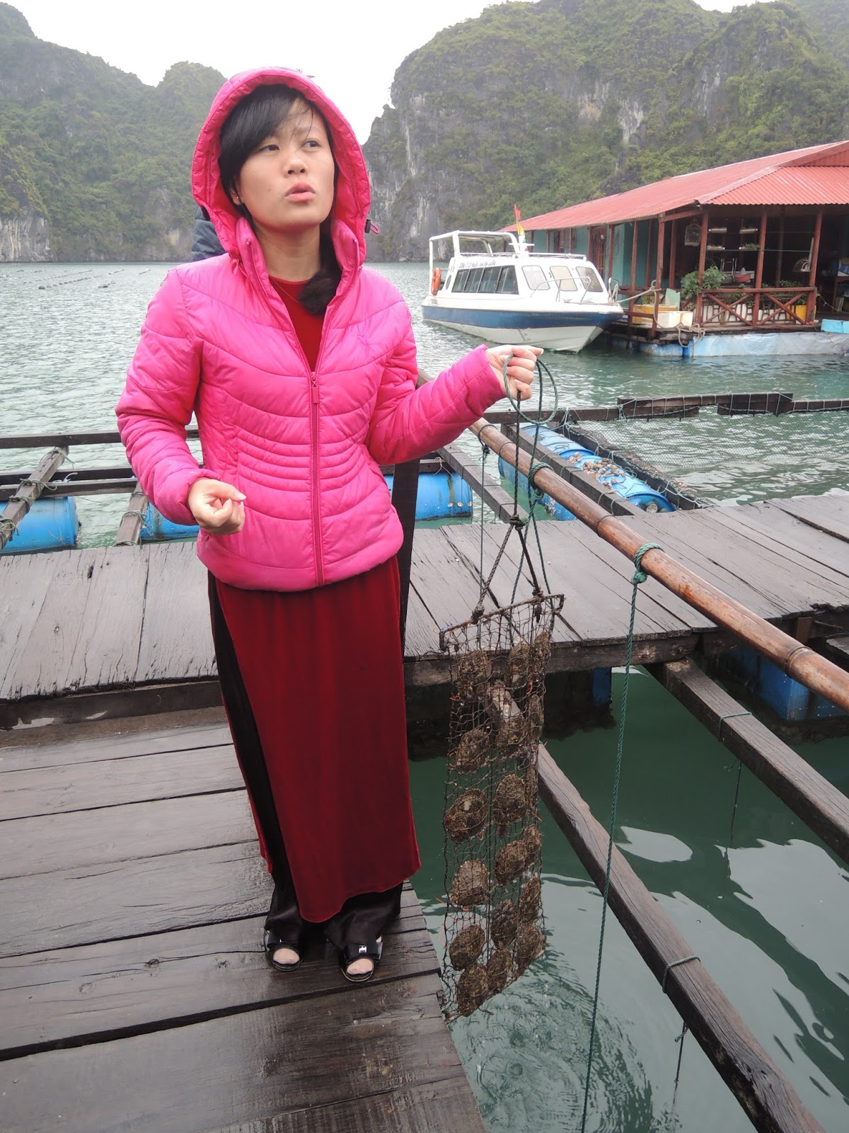 One of the cruise activities involved visiting a "pearl farm", where we learned about how oysters are raised to produce pearls.